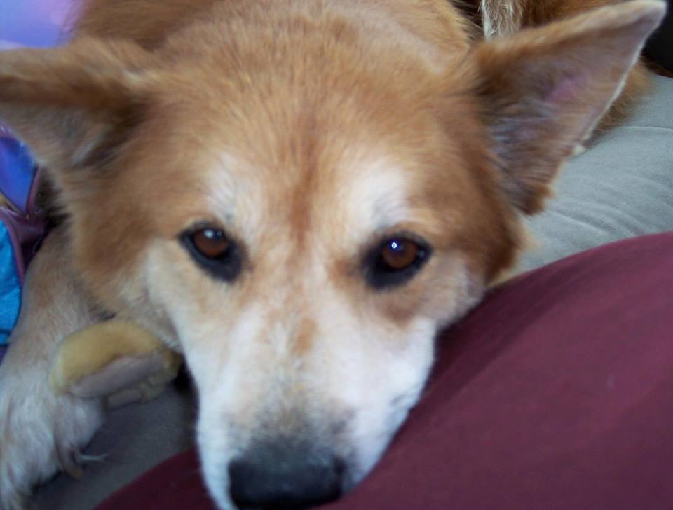 Even after we began crate-training, she’d find ways to cause havoc. She was an amazing escape artist and could be out the door before you knew what had happened. I’d go answer the door and a red flash would whiz past as she escaped. Somehow she often managed to do this while I was dressed up for work, so I’d have to chase after her through fields and busy streets wearing five inch heels. My parents got to experience this fun little game of hers whenever they were dog-sitting. She led my dad on a chase through the woods when he was trying to get ready to leave for a funeral. Often, the only way to get her back was to bribe her with bacon heated quickly in the microwave. All of us had to hone our acting skills, as well. I once collapsed to the ground in a pretend faint to get her to check on me. My dad convinced her that a stump was attacking so she’d run to protect him. You could always count on her appetite and her desire to protect her pack.