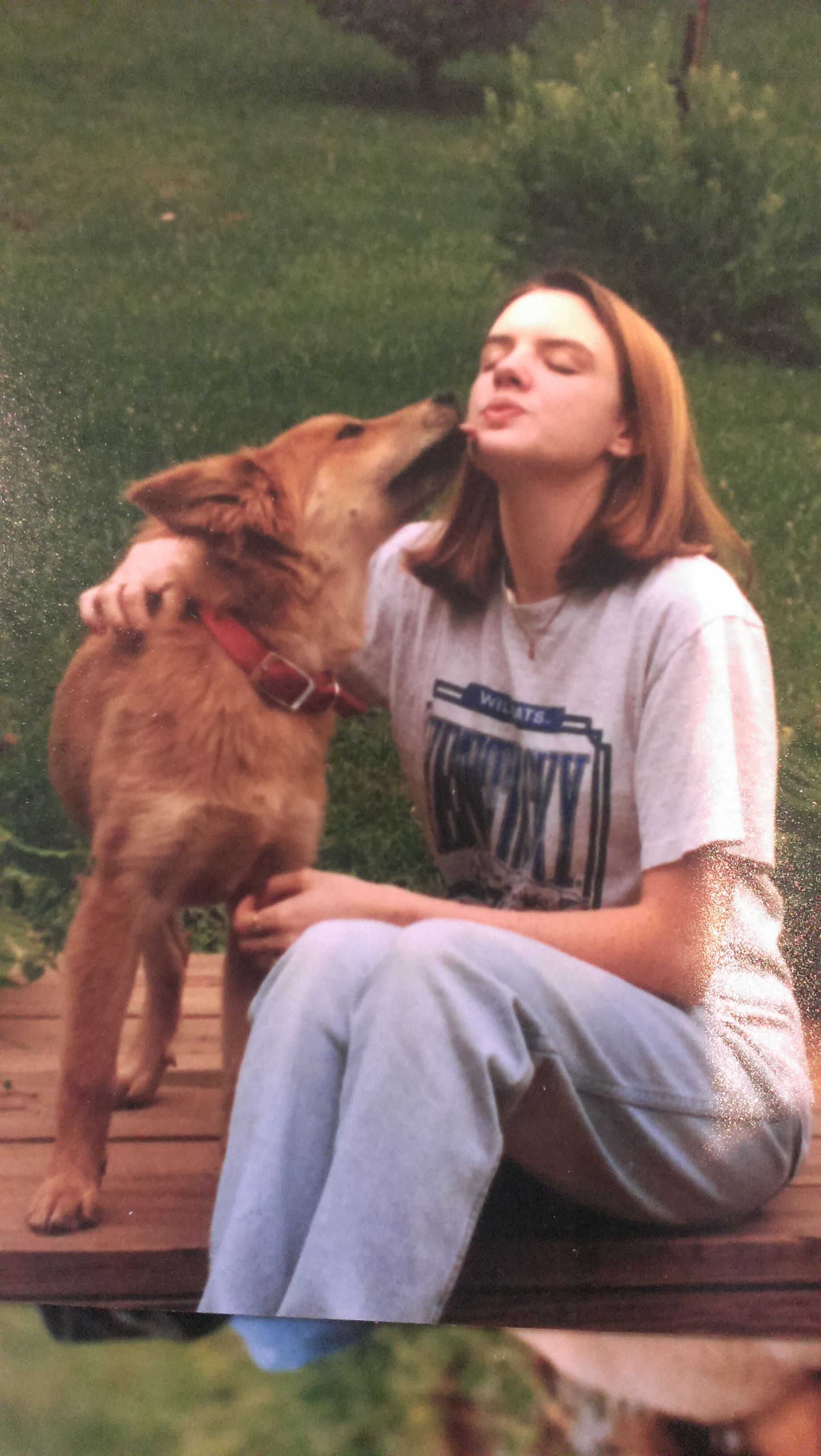 I first met her in March of 1998. She was 11 or 12 weeks old and I was 22. I was also only 3 months away from my first marriage and four years away from being a mom. My soon-to-be-dog came bursting out of a field covered in smelly mud and dragging what appeared to be a length of cow vertebrae, held together with bits of sinew and tendon. I had to drag the little red fuzz ball away from it as she growled little puppy growls and fought to keep her prize. She had one ear up and one ear was still floppy. It wasn’t love at first sight, as I thought she was much rowdier and scruffier than the rest of her litter. Her siblings had all looked for a place on my lap when I arrived and begged for me to pet them. This red firecracker made it clear she had her own life to live and didn’t care if I petted her or not. Still, by the time I got her home, we were both covered in stinky cow pasture mud and I was in love. I named her Misha.
