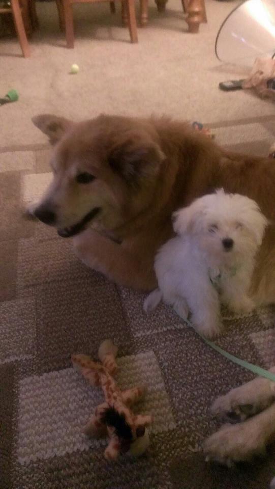 She slept with me in the bed every night and spent every moment I was in the house at my feet. We’d play tug of war and snuggle on the couch. In a crumbling and unhappy marriage, I spent many nights alone, but she stayed with me as I cried into her fur. She’d lay her neck across me and lean in toward me in her version of a hug. For several years, it felt like it was just the two of us taking care of one another. Still, when I had my daughter, Misha greeted the new baby with enthusiasm and care. She exiled herself from the couch and the bed for fear of hurting the new “puppy”. Misha had infinite patience with Anya and I can’t count how many times I walked into a room to see my little toddler dressing Misha up in hats or pouring her make-believe tea. Misha never shredded another stuffed animal. Stuffed animals were now property of the baby. Misha never had to be told that, either. She just knew.